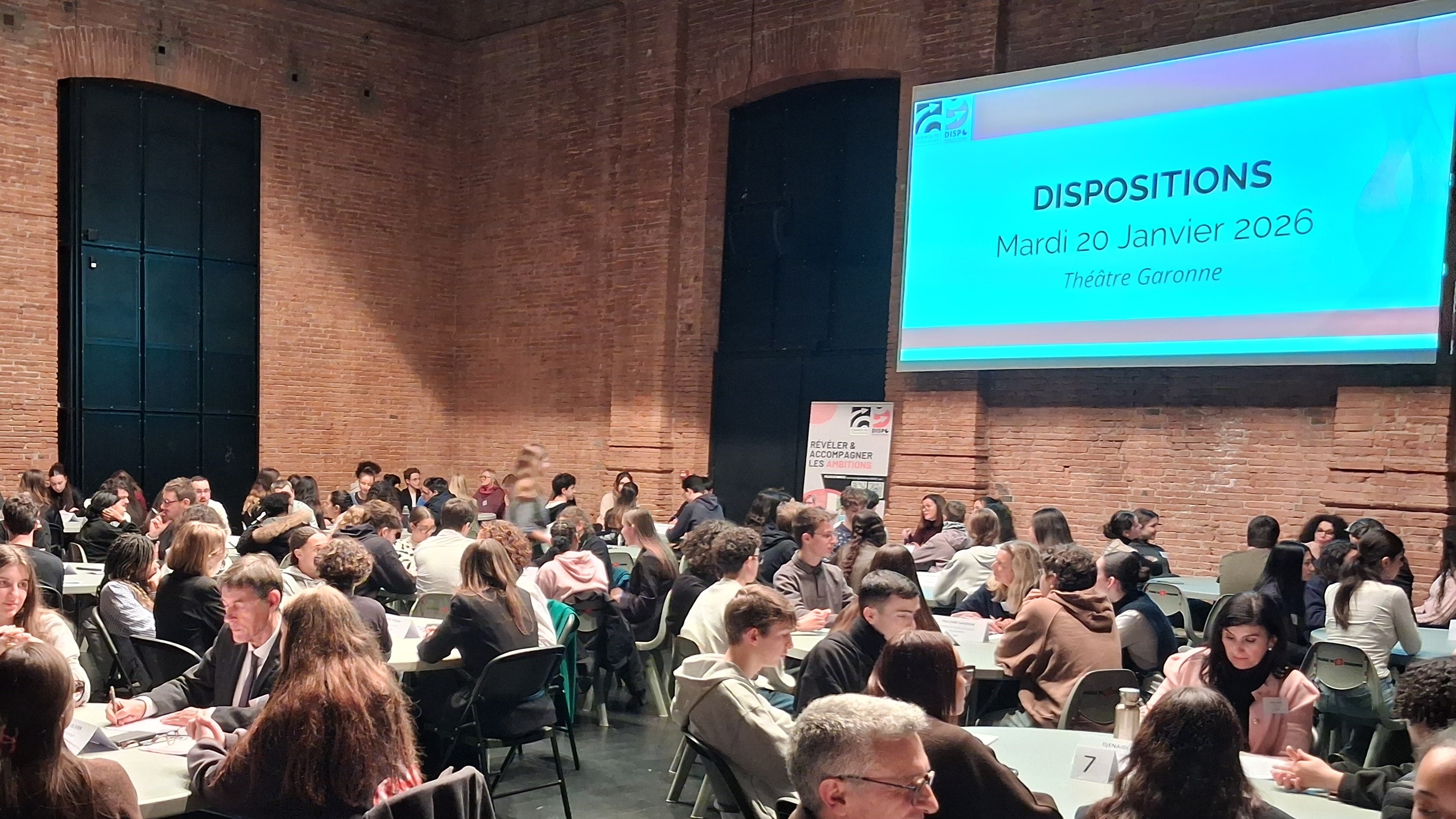 Dans le cadre du programme DISPO nos élèves de première impliqués dans ce dispositif ont participé le 20 janvier 2026 à la journée DISPOSITIONS, un événement dédié à l’orientation et au développement de la confiance en soi, organisé au sein du Théâtre Garonne à Toulouse.