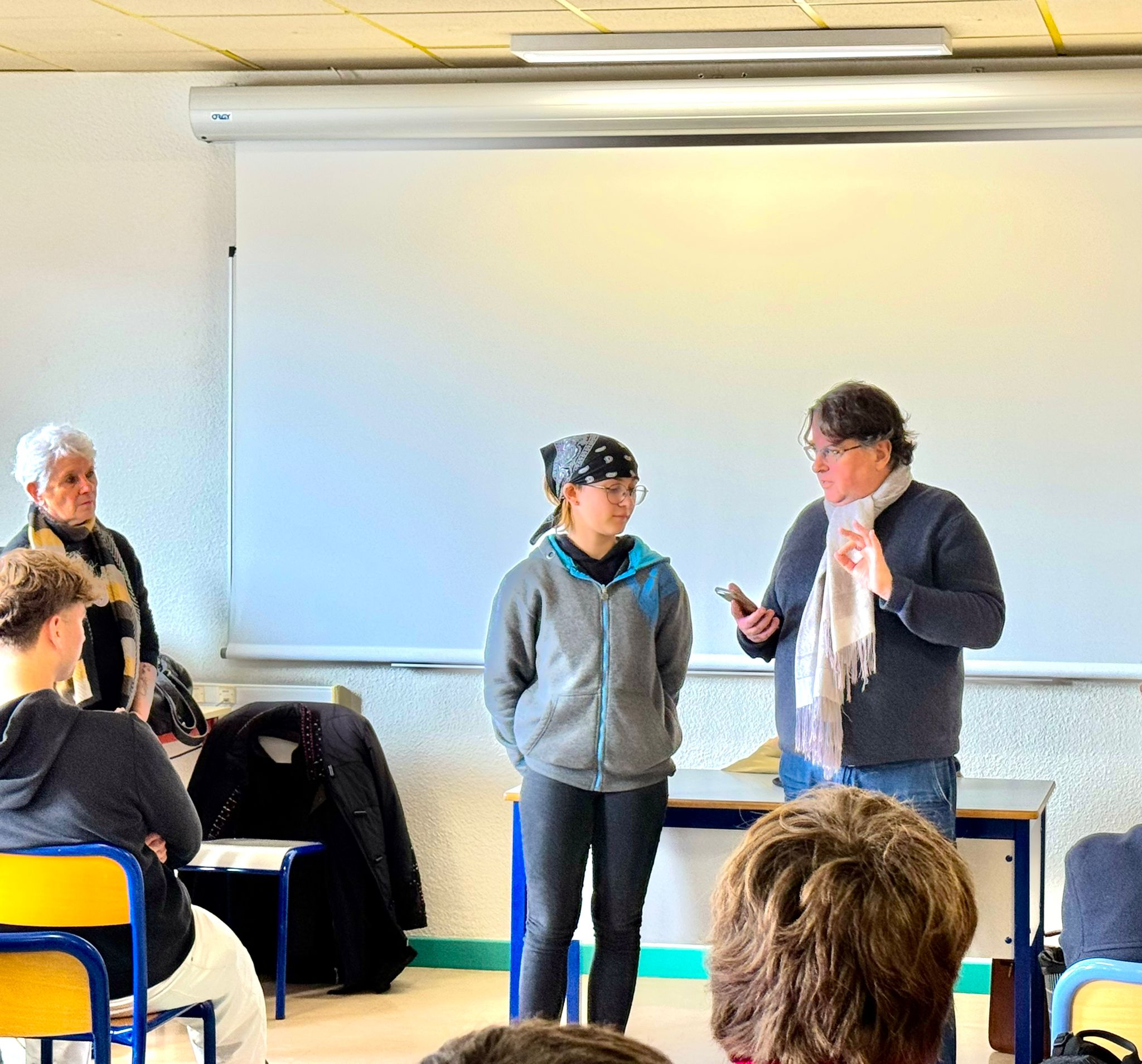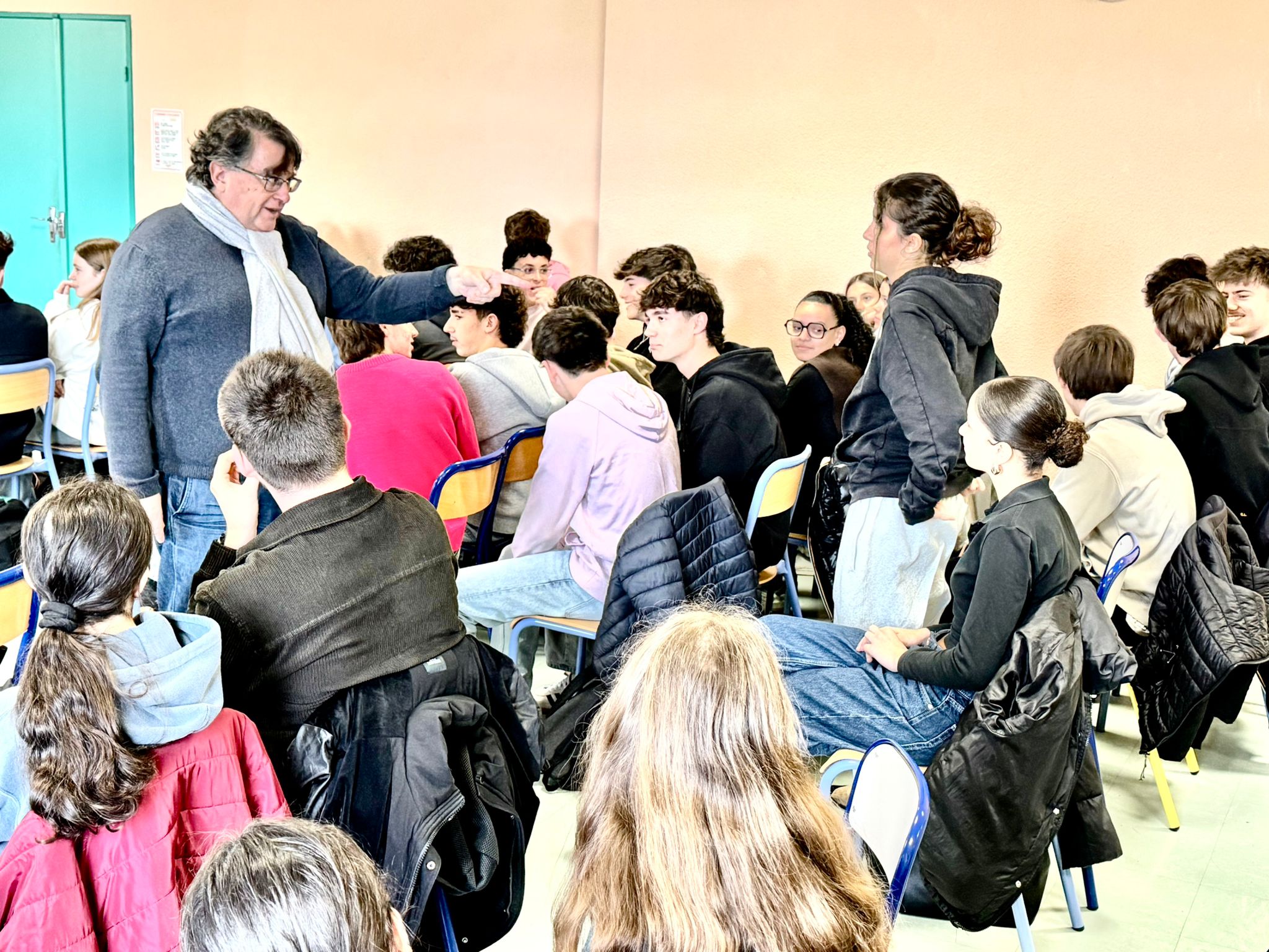 Le lycée Michelet poursuit son projet de concours de plaidoiries avec la Ligue des Droits de l’Homme du 65. Nouvelle étape pour les élèves de 1ère dans leur préparation : la rencontre avec Christophe Verzeletti, un comédien professionnel venu à leur rencontre. Ce mardi 17 février, conseils sur la voix, la posture à tenir, l’articulation … plusieurs jeux de prononciation et mise en situation ont permis aux élèves de 1A et HLP de mieux se projeter dans l’échéance du discours à voix haute devant un public. Chapeau l’artiste !